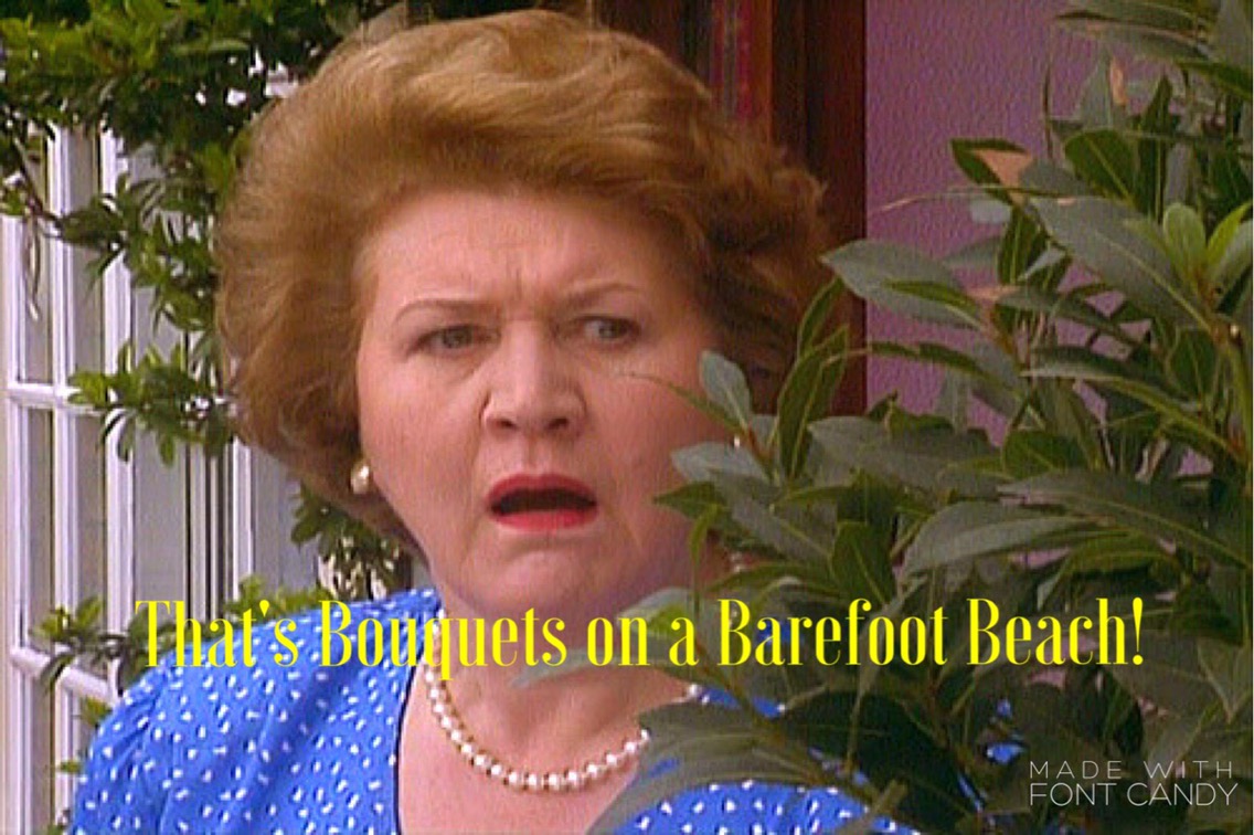 June 21, 2017June 21, 2017 Kimberly Vargas Agnese In case anyone is tempted to refer to me as that “Bucket Woman” on a Barefoot Beach…it’s BOUQUETS, on a Barefoot Beach and if you don’t know who I’m referring to, I dare you to check out Hyacinth on Keeping Up Appearances… (funniest British sitcom ever!) Share this: Share on X (Opens in new window) X Share on Facebook (Opens in new window) Facebook Like Loading...