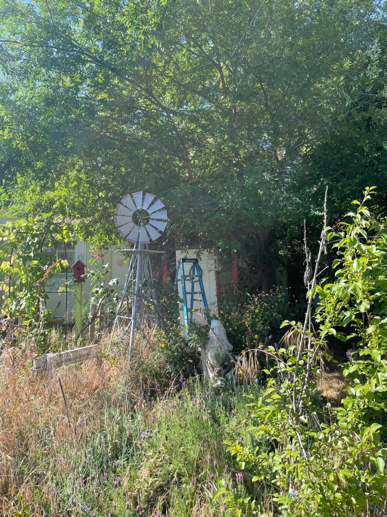 I’ve taken some permaculture classes during which I learned about a technique of mulching which Ruth Stout brought to the community. It emphasized the use of hay in gardens to suppress weeds and retain moisture. Before this we would, like many gardeners, weed our yards and throw them away. ( We still do this in the front yard) But it dawned on me that all those “ weeds” were actually a type of hay.. and so .. we have reframed our understanding of the wild things God tosses into our yard and renamed them blessings:)