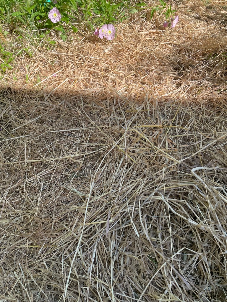 Although I enjoy the look of wild oats, it’s time to harvest them to use as mulch before the heat kicks in.. in the winter, they will decompose and add nitrogen to our soil:)
