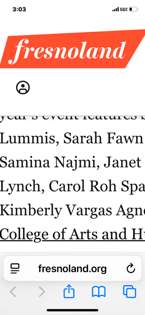 November 9, 2025November 9, 2025 Kimberly Vargas Agnese Unbeknownst to us… there was a mention in Fresno Land about the Fresno State Writer’s Summit back in September ( a nonprofit newsroom :) As usual, Stephanie just found and sent to me:) Thank YOU LORD:) Share this: Share on X (Opens in new window) X Share on Facebook (Opens in new window) Facebook Like Loading...